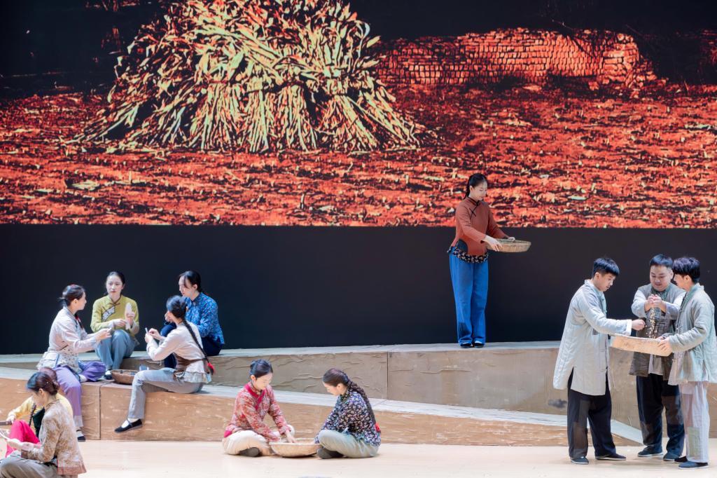 歌剧《向前》以淮海战役为背景,生动讲述“小李庄”青年淮山带领村民们冒着枪林弹雨忍受风雪饥寒,用小推车护送粮食支援前线,最后在途中为掩护村民保护粮食,不幸被炸弹击中、壮烈牺牲的故事。演出以淮山主动报名支前送粮为主线展开叙述,以个体代表群像展现了淮海战役中起到重要保障作用的万千群众,同时“以点带面”描绘了淮海战役期间党同人民一条心、男女老幼齐上阵的生动画卷,还原了淮海战役中军民团结一家人,水乳交融、生死与共的壮观场景。现场深情动人的剧情、高亢激昂的唱腔、气势磅礴的演绎,赢得了在场观众的热烈掌声。