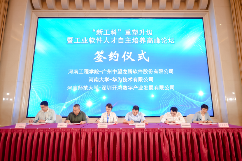河南大学、河南师范大学、河南工程学院作为河南省高校代表分别与华为技术有限公司、深圳开鸿数字产业发展有限公司、广州中望龙腾软件股份有限公司等广东省工业软件企业进行了合作签约。