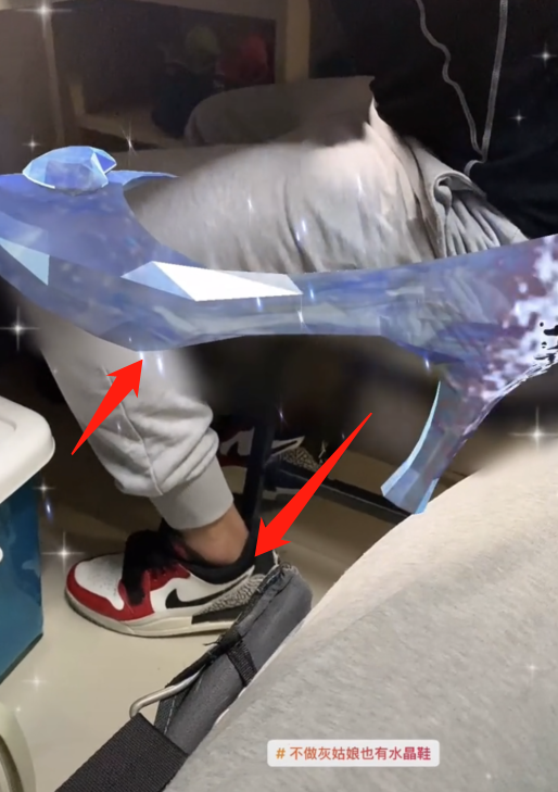 看吧,本应出现在对面老哥球鞋上的水晶鞋,却套在了老哥大腿上。