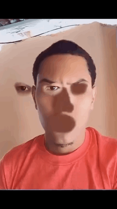 这滤镜开启后,眼睛鼻子都会飞出画面,需要靠自己操作把它们组合回去,五官完全对位才算挑战成功。
