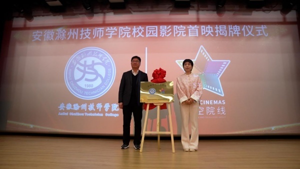 3月13日下午,安徽滁州技师学院礼堂内气氛热烈,学校与安徽电影集团共建的星空校园影院揭牌暨首映仪式在这里隆重举行。校党委书记陈通,校党委委员、副校长施亮,校党委委员张婷婷,校办公室主任张梅,校纪委副书记谢承勇以及星空院线公司总经理、安徽电影集团校园事业部主任郭婷婷出席了本次首映仪式,各处室、系部负责人和近千名师生代表共同见证了这一激动人心的时刻。仪式由校团委书记曹锐主持。